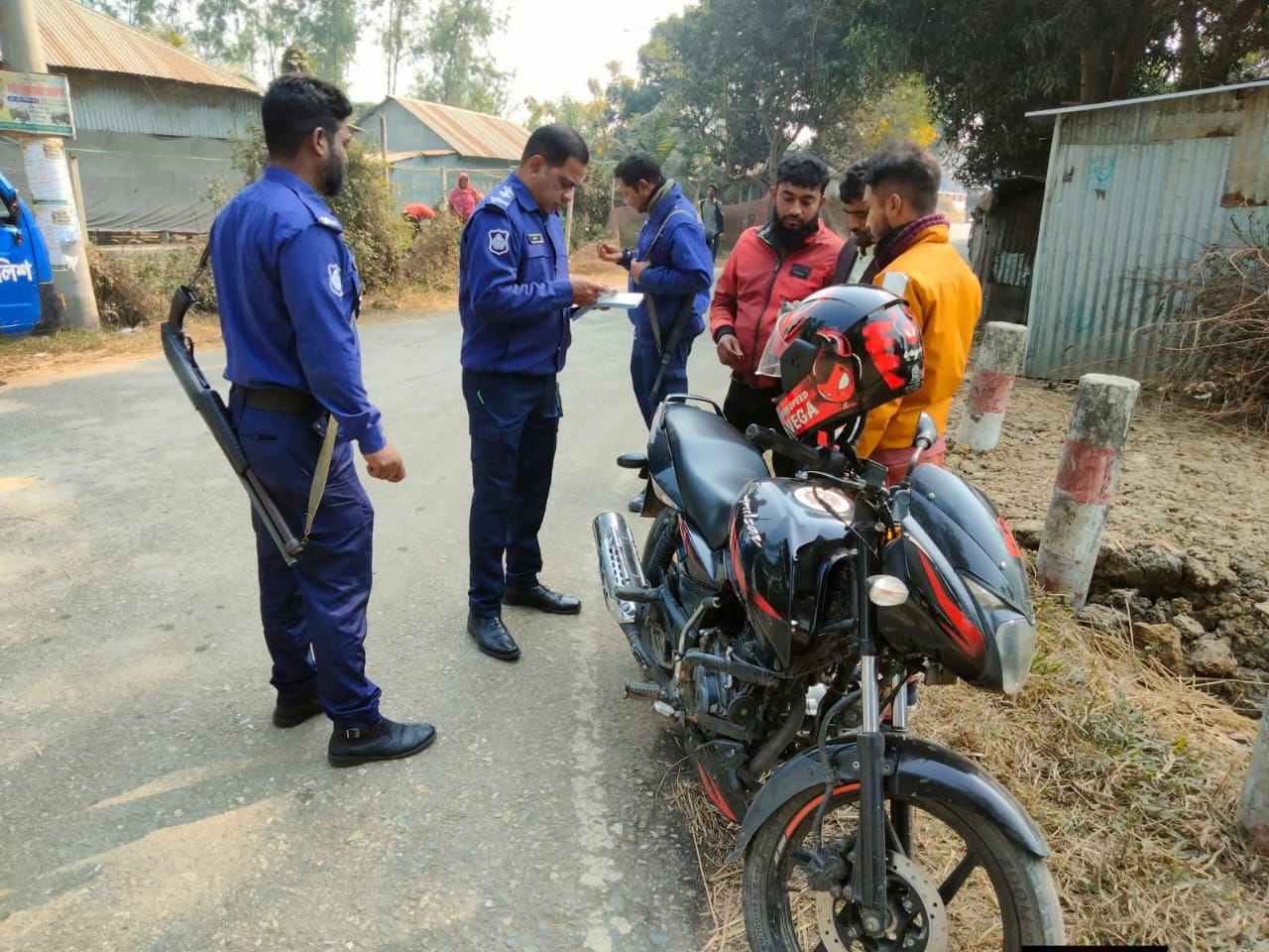 সিরাজগঞ্জ জেলার পুলিশ সুপার মোঃ সাইফুল ইসলাম সানতু, বিপিএম(বার) মহোদয়ের নির্দেশনায় বিভিন্ন স্থানে বিশেষ চেকপোস্ট বসানো হয়েছে এবং রেজিস্ট্রেশনবিহীন মোটরসাইকেলসহ অন্যান্য যানবাহন নিয়মিতভাবে আটক করার উদ্যোগ নেওয়া হয়েছে।