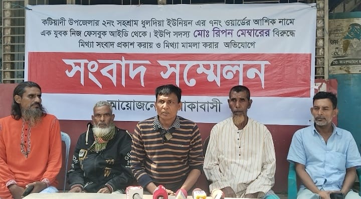 কটিয়াদীতে ইউপি সদস্যের বিরুদ্ধে ব্ল্যাকমেইলিং ভিডিও ছড়ানো ও মিথ্যা মামলার প্রতিবাদে সংবাদ সম্মেলন