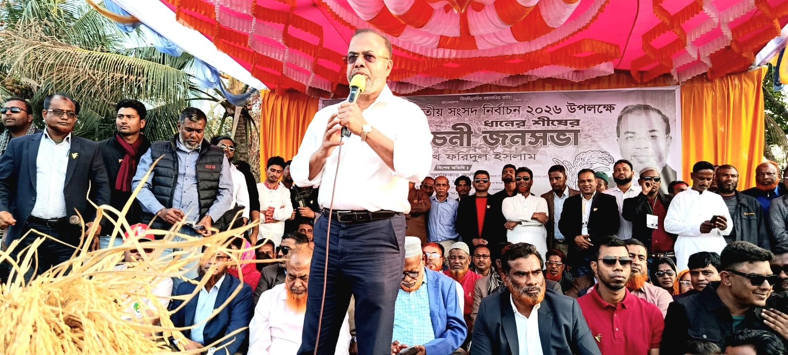 উপজেলার সদর ইউনিয়ন বিএনপির সভাপতি শেখ হাফিজুর রহমান তুহিনের সভাপতিত্বে অনুষ্ঠিত নির্বাচনী জনসভায় বক্তব্য দেন, উপজেলা বিএনপির সাধারণ সম্পাদক আলতাপ হোসেন বাবু, সাবেক সদস্য সচিব কাজী জাহিদুল ইসলাম, সাংগঠনিক সম্পাদক মাসুদুর রহমান পিয়াল, উপজেলা যুবকদের আহবায়ক মল্লিক জিয়াউল হক জিয়া। কেন্দ্রীয় ছাত্রদলের সহ সাধারণ সম্পাদক শারমিন সুলতানা রুমা, সাবেক কেন্দ্রীয় ছাত্রদল নেতা ও সিআইপি মাইনুল ইসলাম সোহান, উপজেলা ছাত্রদলের সদস্য সচিব ও বার এট ল এর শিক্ষার্থী মো. রবিউল ইসলাম প্রমুখ। সভায় বক্তারা বলেন, একটি কুচক্রী মহল ধানের শীষের গণজোয়ার দেখে ভোট বানচালের চেষ্টা করছে। তারা ভূয়া সিল ও ভূয়া ব্যালট পেপার ছাপিয়ে জাল ভোট দিবে। আপনারা সজাগ থাকবেন যাতে আমাদের অর্জনকে কেউ চুরি করতে না পারে। সভায় হাজার হাজার নেতা-কর্মী ও নারী পুরুষ স্বত্বস্পূর্তভাবে অংশ নেন। এতে এলাকায় জনসমুদ্রে পরিণত হয়।