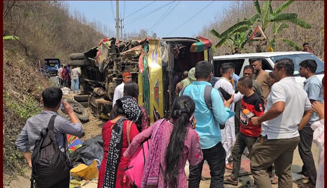বৃহস্পতিবার( ২৬ শে মার্চ) সকালে এই দুর্ঘটনা ঘটে। দুর্ঘটনার পরপরই বাসটির চালাক পালিয়ে যায়। বাসে থাকা যাত্রীদের সূত্রে জানা গেছে ঈদের ছুটি শেষে প্রায় ৫০ জন যাত্রী নিয়ে বাসটি রিজার্ভ করে চট্টগ্রামের কর্মস্থলে ফিরছিলেন পোশাক শ্রমিকরা, পথি মধ্যে সাপছড়ি এলাকার একটি ঢালু সড়কে বাসটি নিয়ন্ত্রণ হারিয়ে পাশের পাহাড়ের সঙ্গে ধাক্কা খেয়ে উলটে যায়। স্থানীয়রা আহতদের উদ্ধার করে রাঙ্গামাটি জেনারেল হাসপাতালে পাঠিয়েছেন। যাত্রীরা চট্টগ্রামের বিভিন্ন পোশাক তৈরি কারখানায় কর্মরত বলে জানা গেছে। বাসটির যাত্রী জুই চাকমা বলেন বাসটিতে প্রায় ৫০জন যাত্রী নিয়ে রাঙ্গামাটির নানিয়ারচর উপজেলা থেকে চট্টগ্রামের উদ্দেশ্য যাচ্ছি , পথিমধ্যে বাসটি সাপছড়ি এলাকার ঢালু সড়কে নিযন্ত্রণ হারিয়ে পাশের পাহাড়ের সঙ্গে ধাক্কা লেগে উল্টে যায়। চট্টগ্রাম বাস মিনি বাস শ্রমিক ইউনিয়নের সাধারণ সম্পাদক মোঃ খোরশেদ আলম বলেন, বাসটি চট্টগ্রাম যাওয়ার পথে নিয়ন্ত্রণ হারিয়ে উল্টে ১০ থেকে ১২ জন আহত হয়েছে।
