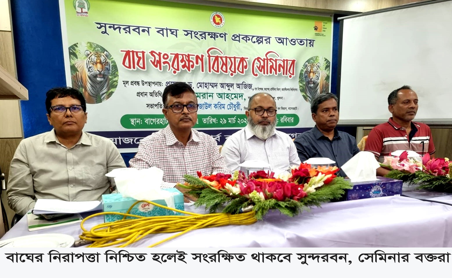 বাগেরহাটের পূর্ব সুন্দরবন বিভাগের বিভাগীয় বন কর্মকর্তা (ডিএফও) মো. রেজাউল করিম চৌধুরীর সভাপতিত্বে অনুষ্ঠিত বাঘ সংরক্ষণ সেমিনারে প্রধান অতিথি ছিলেন খুলনা অঞ্চলের বন সংরক্ষক (সিএফ) ইমরান আহমেদ। সেমিনারে মূল প্রবন্ধ উপস্থাপন করেন বাঘ বিশেষজ্ঞ জাহাঙ্গীর নগর বিশ্ববিদ্যালয়ের প্রাণীবিদ্যা বিভাগের অধ্যাপক ড. মোহাম্মদ আব্দুল আজিজ। সেমিনারে গনমাধ্যম কর্মী ও বন নিয়ে কাজ নানা শ্রেণীপেশার মানুষ অংশ নেন।