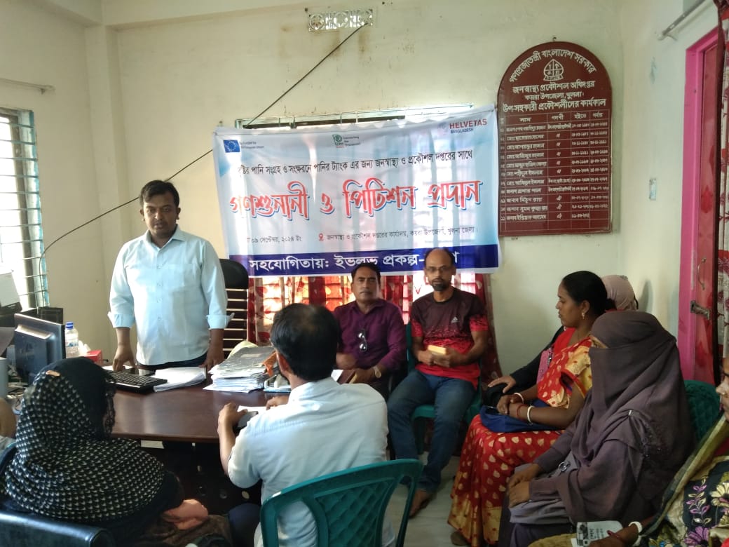 কয়রায় সুপেয় খাবার পানির জন্য জনস্বাস্থ্য প্রকৌশলীর সাথে গনশুনানী ও পিটিশন জমা