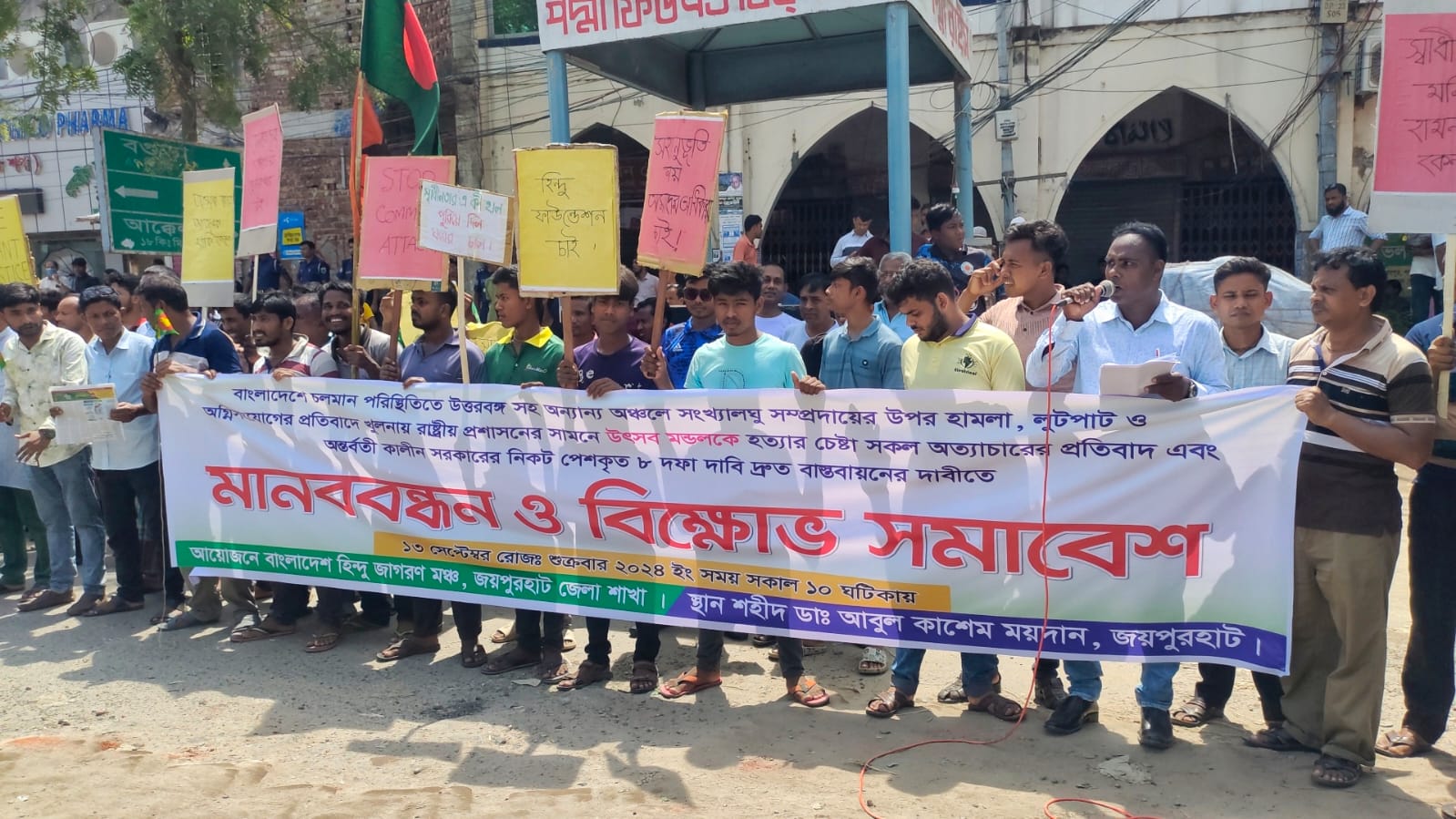 বিক্ষোভ সমাবেশে প্রভাষক গোবিন্দ কুমার বাঁশফোর এর সভাপতিত্বে বক্তব্য দেন, হিন্দু জাগরণ মঞ্চ জয়পুরহাট জেলা শাখার সমন্বয়ক সাংবাদিক চৈতন্য চ্যাটার্জী, এ্যাড. রনেশ চন্দ্র সাহা, সমাজ সেবক সুবাস চন্দ্র দাস, প্রনব চন্দ্র রায়, শিক্ষক লিপি রানী শীল, রবিন হরিজন, কল্যান চন্দ্র মন্ডল, অন্তর বর্মন, কৌশিক চন্দ্র রায়, উৎপল চক্রবর্তি, শিক্ষার্থী সয়ন কুমার মন্ডলসহ অন্যান্যরা।