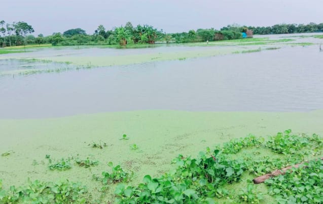 কয়রায় অতি বৃষ্টিতে চিংড়ি ঘেরও আমনের ক্ষেত পানির নিচে