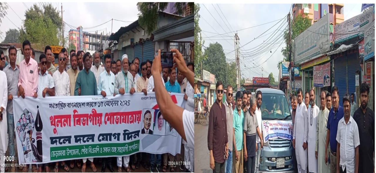 খুলনা বিভাগীয় শোভাযাত্রায় অংশগ্রহণের উদ্দেশ্যে কুষ্টিয়া ভেড়ামারা উপজেলা বিএনপির যাত্রা।