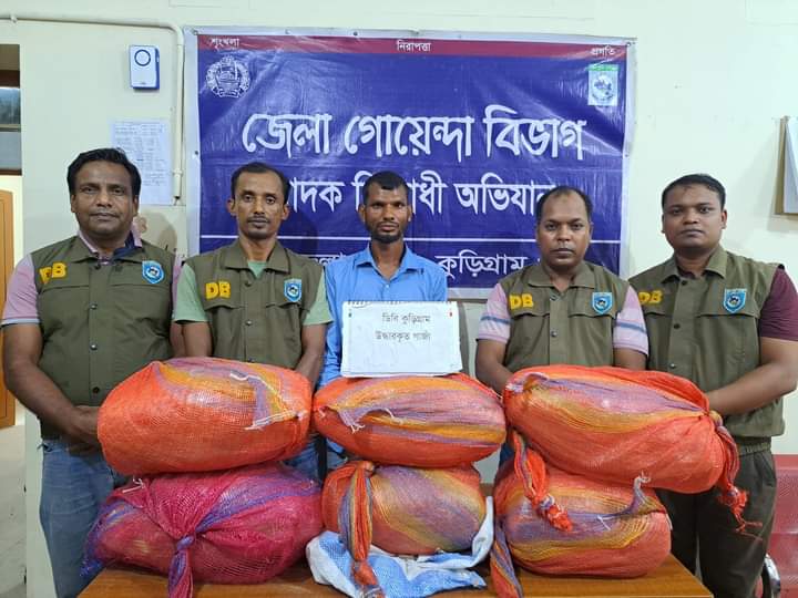 কুড়িগ্রামে ৩২.৭ কেজি গাঁজাসহ মাদক ব্যবসায়ী গ্রেফতার