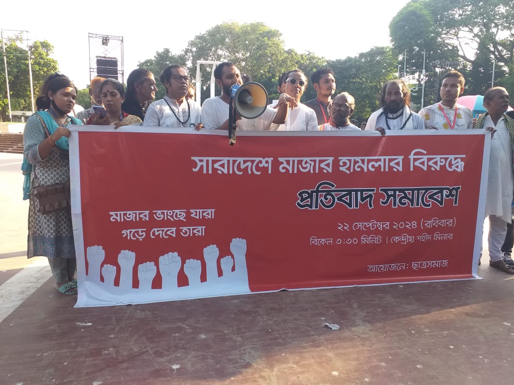 মাজার ভাংচুর প্রতিবাদে বিক্ষোভ সমাবেশ এবং বাউল ফকিরি বাউল গান,