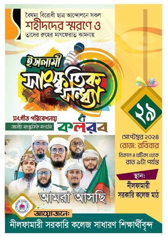 বৈষম্য বিরোধী ছাত্র আন্দোলনের শহীদদের স্মরণে ইসলামী সাংস্কৃতিক সন্ধ্যা অনুষ্ঠিত