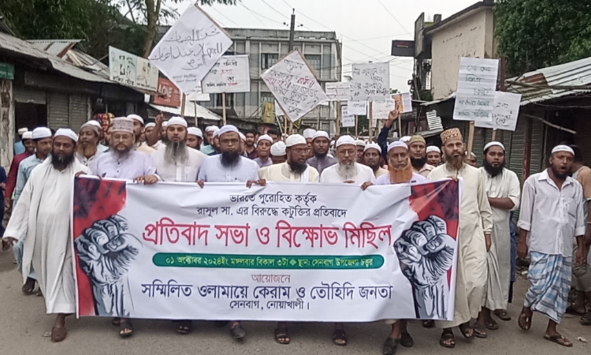 রাসূল সা: এর বিরুদ্ধে কটুক্তির প্রতিবাদে সেনবাগে বিক্ষোভ মিছিল ও প্রতিবাদ সভা অনুষ্ঠিত