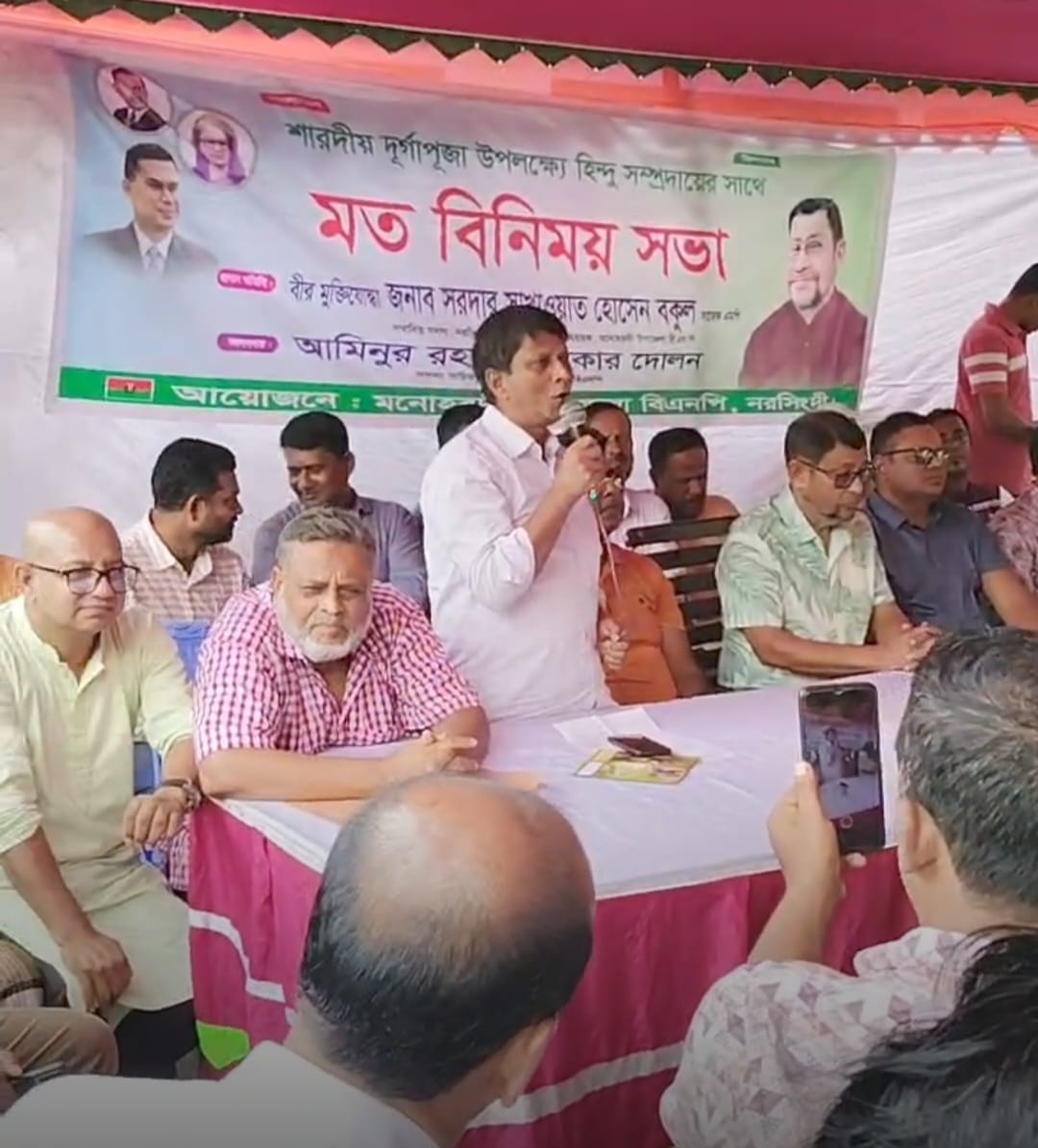 মনোহরদীতে হিন্দু সম্প্রদায়ের সাথে উপজেলা বিএনপির মতবিনিময় সভা অনুষ্ঠিত