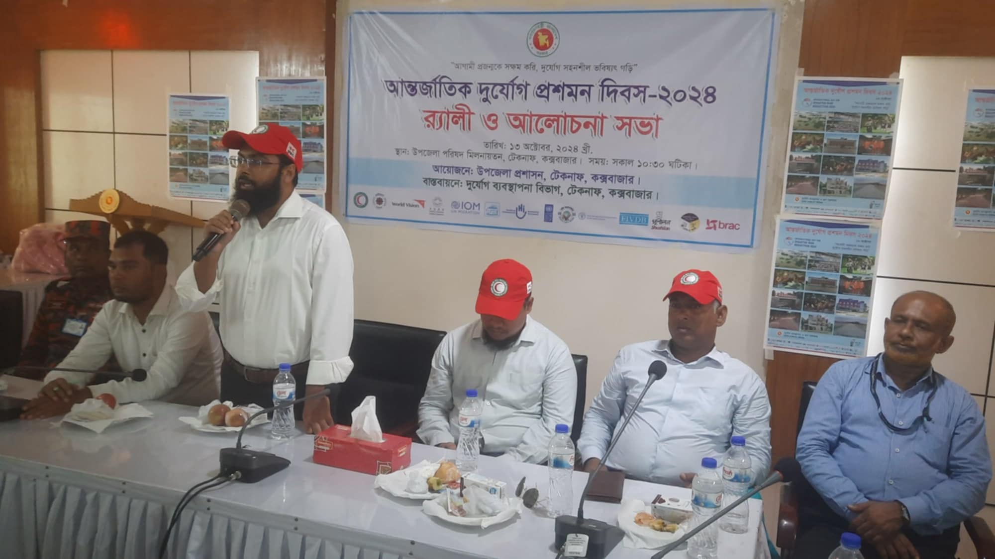 আগামী প্রজন্মকে সক্ষম করি, দুযোগ সহনশীল ভবিষ্যত গড়ি"এ প্রতিপ্রাদ্যকে সামনে রেখে আন্তর্জাতিক দুর্যোগ প্রশমন দিবস উপলক্ষে র্যালি ও আলোচনা সভা১৩ অক্টোবর সকাল ১১ টায় উপজেলা পরিষদ মিলনায়তনে অনুষ্ঠিত হয়।টেকনাফ উপজেলা প্রশাসন এর আয়োজনে এবং টেকনাফ দুর্যোগ ব্যবস্থাপনা বিভাগের বাস্তবায়ন ও এনজিও সংস্থা সুশীলন, রেড ক্রিসেন্ট,আইএমও,হ্যান্ডিক্যাপ,ইউএনডিপি,ফাও,বিজিএস এর অর্থায়ন ও সহযোগিতায় এ সভায়