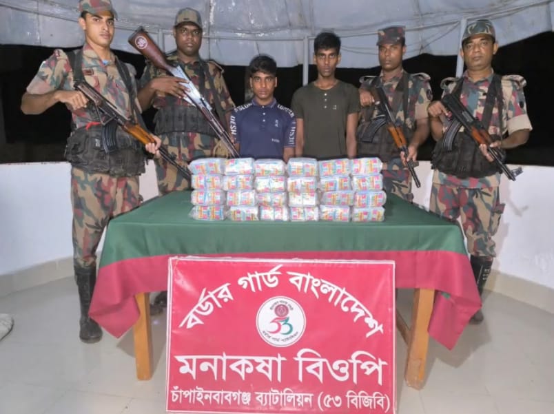 ভারতীয় পাতার বিড়ি ও ইঞ্জিন চালিত নৌকা সহ আটক দুই জন।