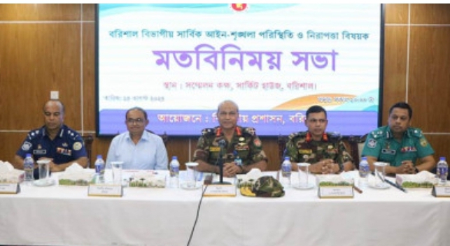 বরিশাল বিভাগীয় সার্বিক আইনশৃঙ্খলা পরিস্থিতি ও নিরাপত্তা বিষয়ক মতবিনিময় সভা অনুষ্ঠিত হয়েছে।