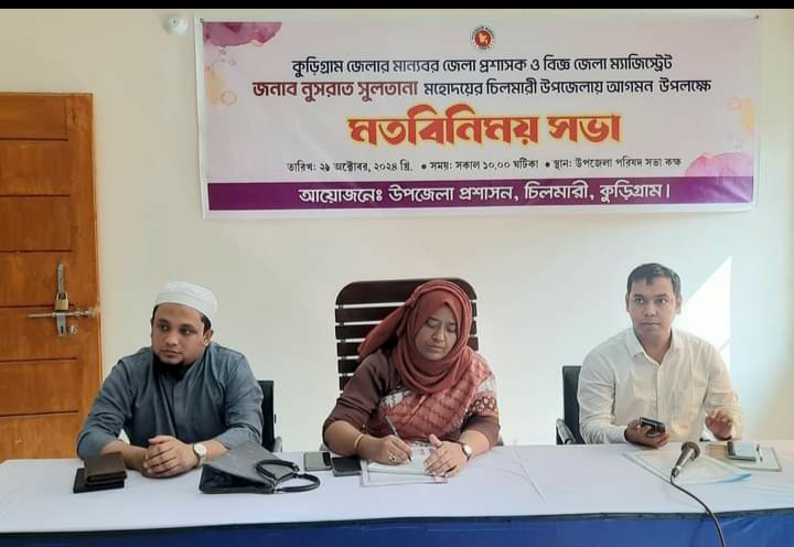 চিলমারীতে জেলা প্রশাসক ও বিজ্ঞ জেলা ম্যাজিস্ট্রেট জনাব নুসরাত সুলতানা মহোদয়ের মতবিনিময় সভা