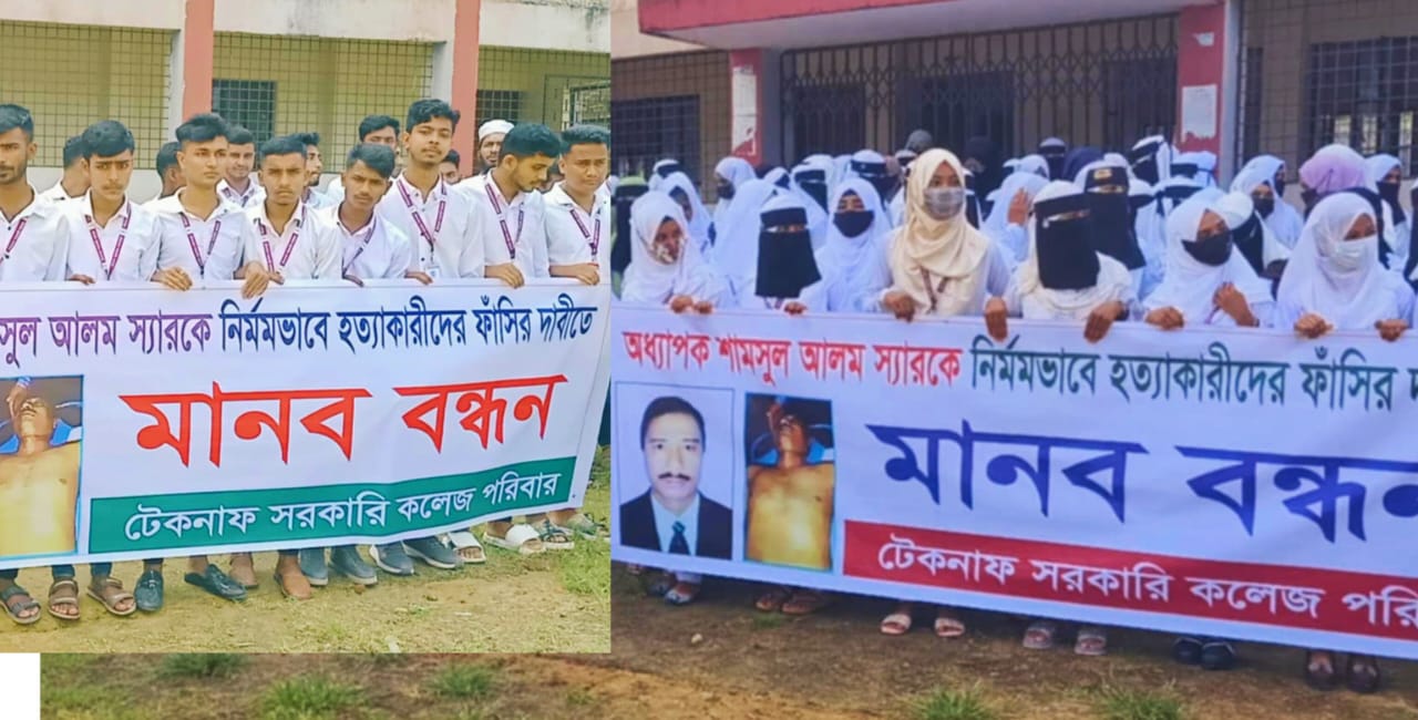 টেকনাফ কলেজ শিক্ষককের হত্যার বিচার নীরবে কাঁদেঃ প্রতিকার চেয়ে মানববন্ধন অনুষ্ঠিত