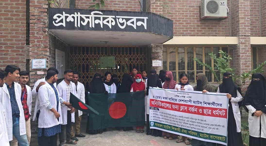 বাগেরহাটে ম্যাটসের প্রশাসনিক ভবনে তালা ঝুলিয়ে দিয়েছে শিক্ষার্থীদের বিক্ষোভ