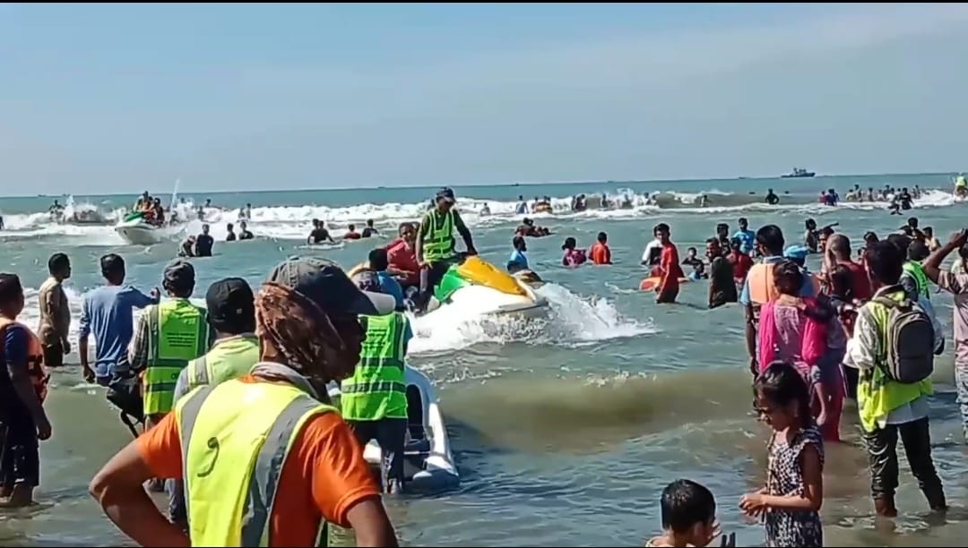 সমুদ্র সৈকতে গোসল করতে নেমে নিখোঁজ হওয়া পর্যটক কে সাথে সাথে উদ্ধার করে দায়িত্ব থাকা ওয়াটার বাইক ব্যবসায়ীরা।