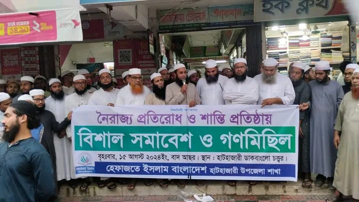 হাটহাজারীতে নৈরাজ্য প্রতিরোধে ও শান্তি প্রতিষ্ঠায় হেফাজতের সমাবেশ ও গণমিছিল