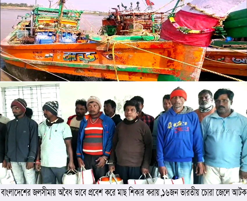 বাংলাদেশের জলসীমায় অবৈধ ভাবে প্রবেশ করে মাছ শিকারের অভিযোগে ১৬ জন ভারতীয় চোরা জেলে ও একটি ফিশিং ট্রলার আটক করেছে কোষ্টগার্ড পশ্চিম জোনের সদস্যরা।