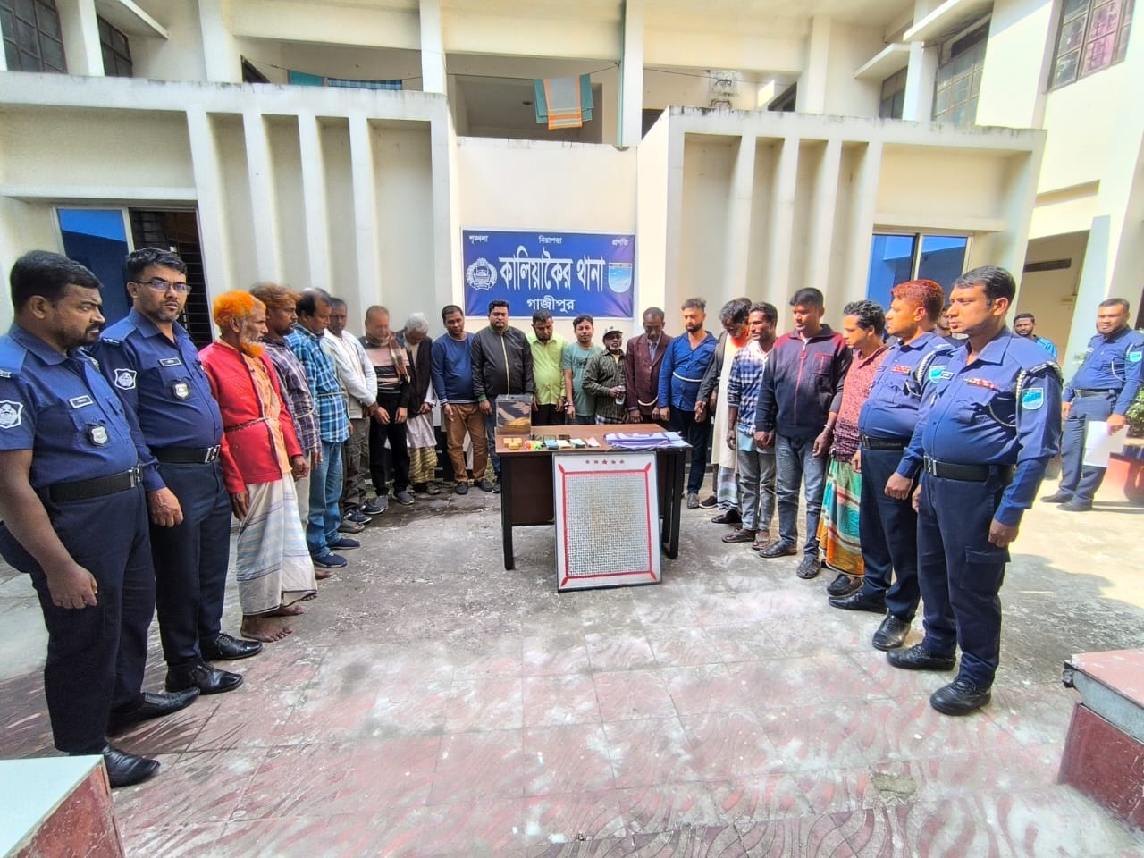 কালিয়াকৈরে থানার ভারপ্রাপ্ত কর্মকর্তা(ওসি) রিয়াদ মাহমুদ জানান, ইউএনও মহোদয়ের নেতৃত্বে এ অভিযান পরিচালনা করা হয়। তুরাগ নদীতে নৌকা থেকে ১৯ জন জুয়াড়িকে মঙ্গলবার রাতে সরঞ্জাম ও টাকা সহ আটক করা হয়েছে। বুধবার দুপুরে তাদের আদালতে পাঠানো হয়েছে।