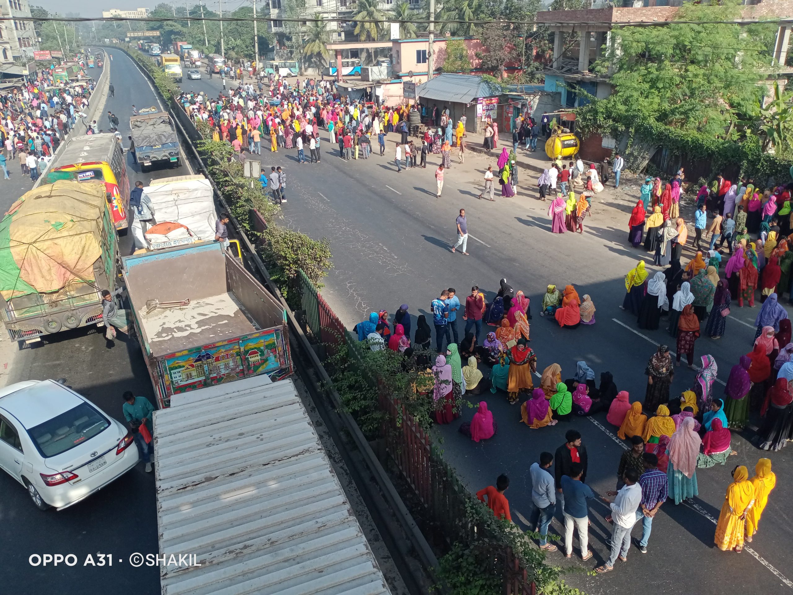 আজ বেতন দেয়া হবে না জেনে শ্রমিকরা ক্ষিপ্ত হয়ে মহাসড়ক অবরোধ করে বিক্ষোভ করতে থাকে।