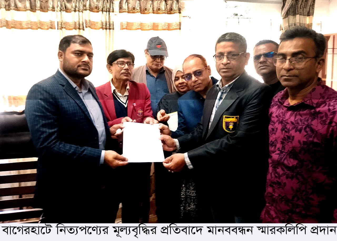 নিত্যপণ্যের মূল্যবৃদ্ধির প্রতিবাদে মঙ্গলবার (৩ ডিসেম্বর) সকালে বাগেরহাট প্রেসক্লাবের সামনে মানববন্ধন ও পরবর্তীতে জেলা প্রশাসক বরাবরে স্মারকলিপি প্রদান করেছেন ক্যাবের বাগেরহাট জেলা শাখার নেতৃবৃন্দরা। মানববন্ধনে বক্তারা অভিযোগ করেন বলেন, সামপ্রতিক সময়ে নিত্যপণ্যের অ¯স্বাভাবিক মূল্যবৃদ্ধি পেয়েছে। বিশেষত আলু, পেঁয়াজ, সবজি এবং সয়াবিন তেলের দাম অতিরিক্ত বৃদ্ধি পাওয়ায় সাধারণ জনগণের নাভিশ্বাস অবস্থা। এছাড়াও সামপ্রতিক বছরগুলোতে নভেম্বর মাসে এমন চড়া দামে আলু বিক্রি হতে দেখা যায়নি। মূলত আলুর হিমাগার পর্যায়ে হিমাগার মালিক, বেপারী ও কমিশন এজেন্টসদের কারসাজিতে হাতবদল ও সরবরাহ নিয়ন্ত্রণের কারণেই এবার আলুর দামের এই উর্ধ্বগতি। হিমাগারে বিপুল মজুদ থাকলেও স্থানীয় কমিশন এজেন্টস ও আড়তদাররা নানা অজুহাতে দাম বাড়িয়ে অস্থিরতা তৈরী করছেন। আবার দাম নিয়ন্ত্রণ বা আলুর সরবরাহ স্বাভাবিক রাখতে হিমাগার ও আড়তদার পর্যায়ে যথাযথ তদারকি নাই। আর এই তদারকি না থাকায় আলুর মতো পেঁয়াজের দাম ও অনেক বেশি। মানববন্ধনে বক্তৃতা করেন ক্যাবের সভাপতি সাংবাদিক বাবুল সরদার, সাধারন সম্পাদক অরিন্দম দেরনাথ, প্রেসক্লাবের সভাপতি কামরুজ্জামান, জাতিয়তা বাদী আইনজিবী ফোরামের সভাপতি মোশারেফ হোসেন মন্টু, সাংবাদিক শাহ্ আলম টুকু, ইয়ামীন আলী, নারীনেতৃ শিল্পী আক্তার প্রমূখ।