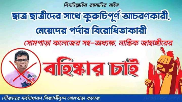 চাটখিল উপজেলার সোমপাড়া কলেজের সহ-অধক্ষ্য জাহাঙ্গীর স্যার এর পদত্যাগের দাবিতে শিক্ষার্থীদের আন্দোলন ও কলেজে তালা ।
