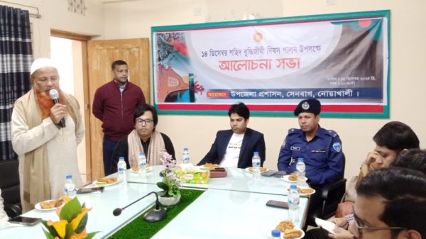 নোয়াখালীর সেনবাগে ১৪ ডিসেম্বর শহিদ বুদ্ধিজীবী দিবস উপলক্ষে শহিদ বুদ্ধিজীবিদের স্মরণে উপজেলা চত্ত্বরে স্মৃতিস্তম্ভে পুষ্পস্তবক অর্পণ ও আলোচনা সভা অনুষ্ঠিত হয়।