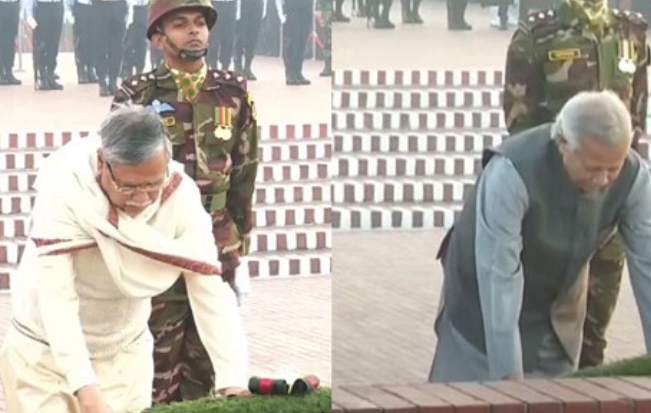 মহান বিজয় দিবসে সাভারের জাতীয় স্মৃতিসৌধে বীর শহীদদের প্রতি শ্রদ্ধা নিবেদন করেছেন রাষ্ট্রপতি মো. সাহাবুদ্দিন ও অন্তর্বর্তী সরকারের প্রধান উপদেষ্টা ড. মুহাম্মদ ইউনূস।