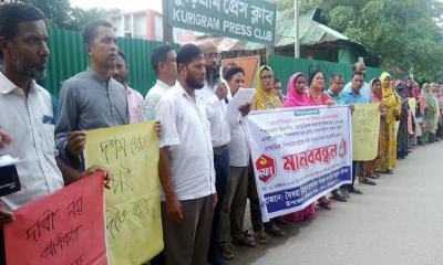 শিক্ষকদের গ্রেড ও বেতন বৃদ্ধির দাবিতে কুড়িগ্রামে মানববন্ধন