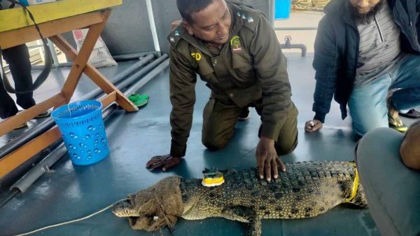 সুন্দরবনে স্যাটেলাইট ট্রান্সমিটারযুক্ত কুমির অবমুক্ত