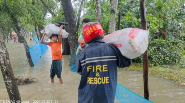 বন্যাদুর্গতদের পাশে ফায়ার সার্ভিস ২৬০ নারী-পুরুষ ও শিশু উদ্ধার