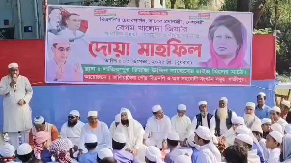 বিএনপি চেয়ারপারসন বেগম খালেদা জিয়ার সুস্থতা কামনায় কালিয়াকৈরে দোয়া মাহফিল অনুষ্ঠিত