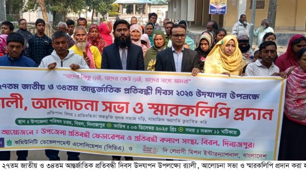 বিরলে ২৭তম জাতীয় ও ৩৪তম আন্তর্জাতিক প্রতিবন্ধী দিবস উদযাপন