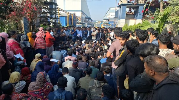 বোয়ালখালীতে এন,মোহাম্মদ ফ্যাক্টরিতে ১৩ দফা দাবিতে শ্রমিকদের বিক্ষোভ